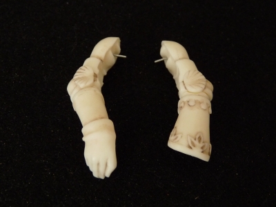 腕の飾りを仮組して切削具合の参考に。