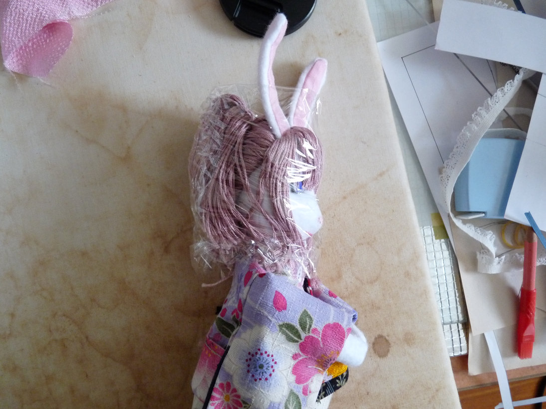 右の写真は跳ねを抑えるのにラップを巻いています。植毛してある人形など、長期保存する場合にもこのようにしておきます。