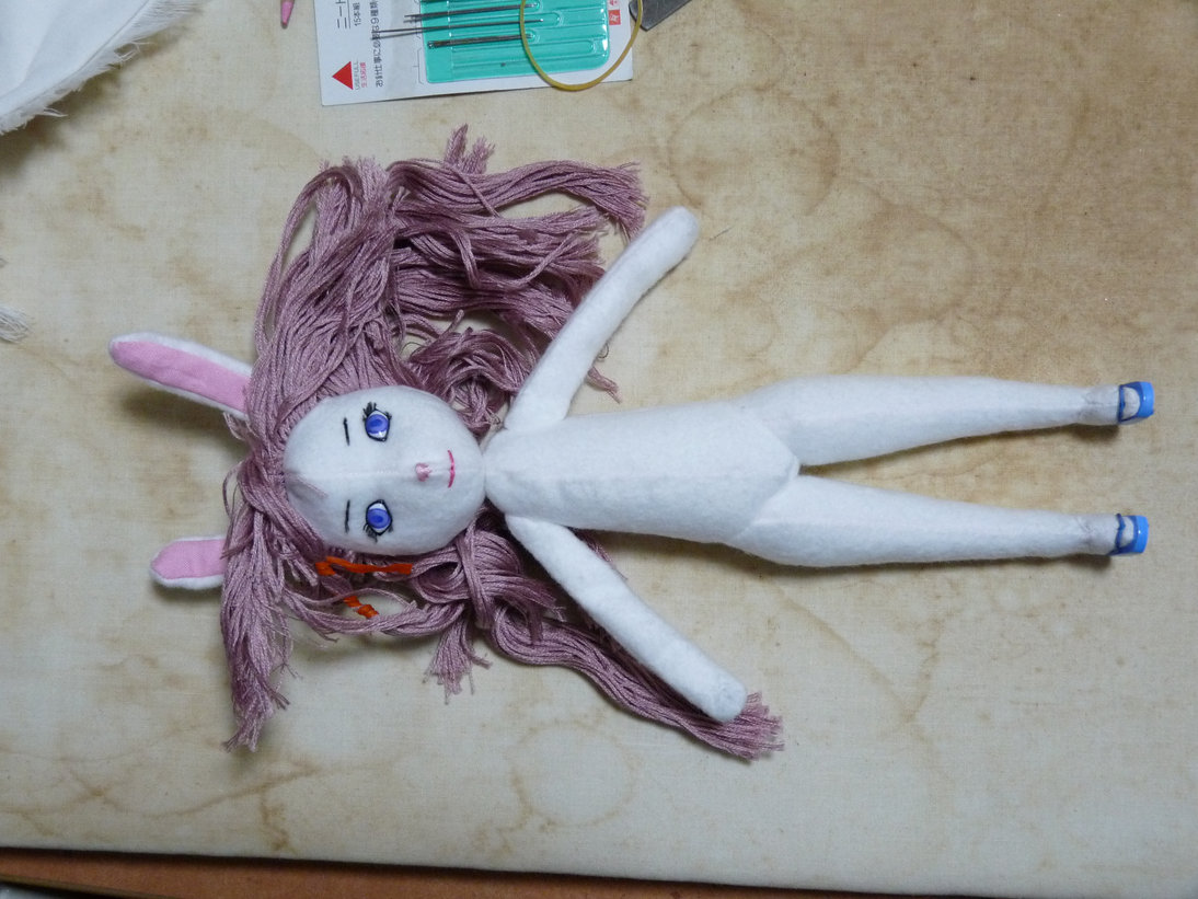 鼻、口、眉、睫毛、を刺繍糸で縫います。