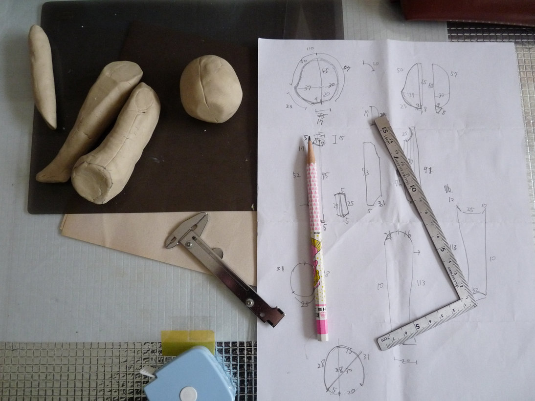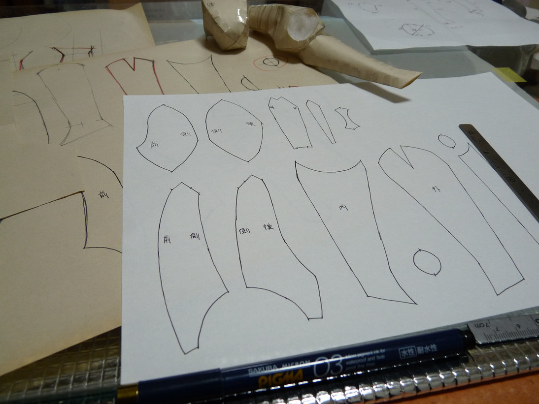 出来上がったすっぽんぽんの体にメジャーを当て書きあげます。