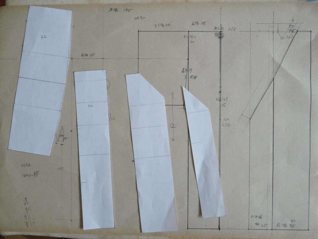 袖、後ろ、前、衿・・・と柄がつながるように制作するのですが上手く柄がとれませんでした。このサイズでこの柄は大きすぎるようです。