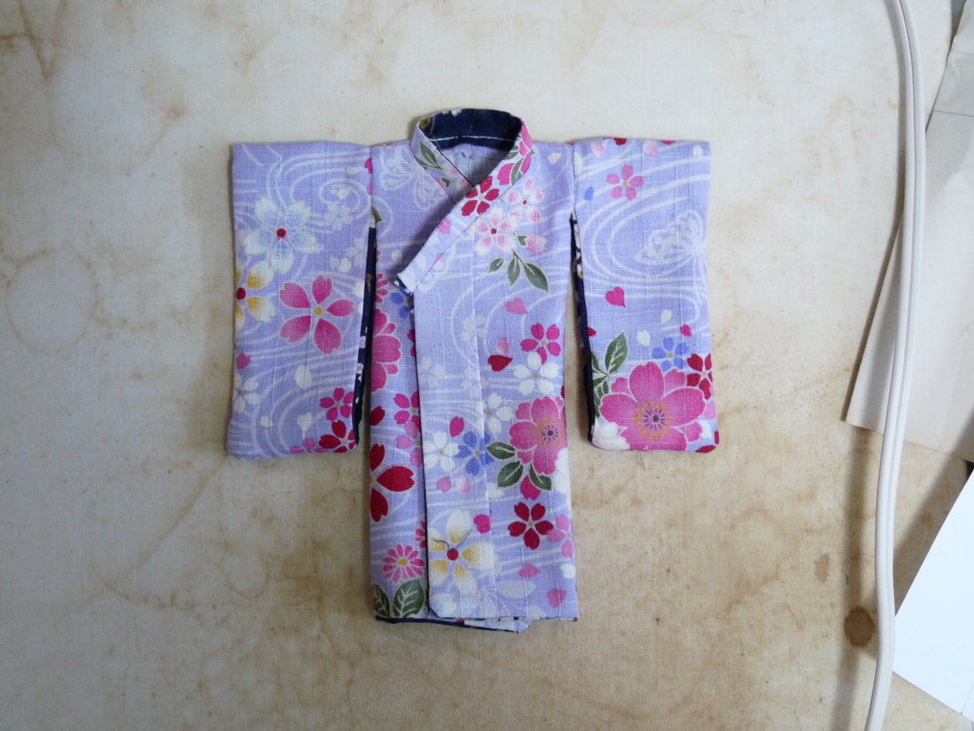しかし、タイトルに無いように作り方の本ではないので、そこはカンです。そもそもミニュチュアを作るのに本物通りに作ったら布の厚みがそうはさせないに決まっています。そしてスキル面でも着物なんて私には作れないに決まっています。ていうか人の体型と違うヌイグルミのサイズに合うように出来上がるわけが・・・この採寸は人のと大差なかったと思います。着物って良くできてるもんです。